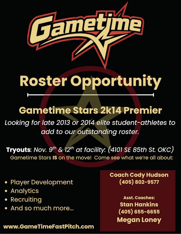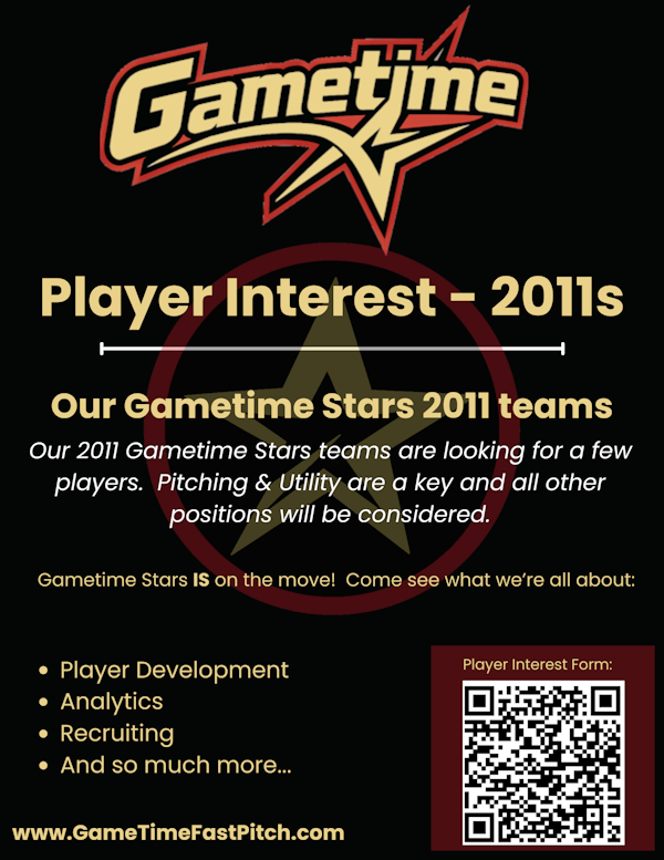 If you have any questions, please reach out to us, info@GameTimeFastPitch.com